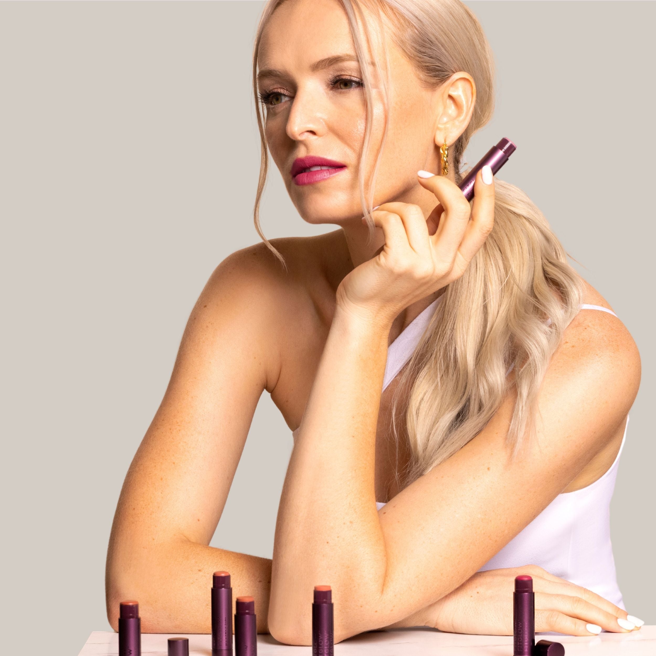 Multi-functioning soft matte lipstick + cheek stick delivers all the benefits of skincare while enveloping lips in a beautiful, natural and long lasting colour. Pro collagen complex with Ceramides and Vitamins strengthens, smooths and defends from environmental pollutants while fighting signs of aging. Swipe over lips or cheeks for a healthy dose of colour.